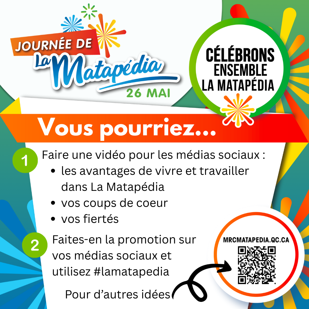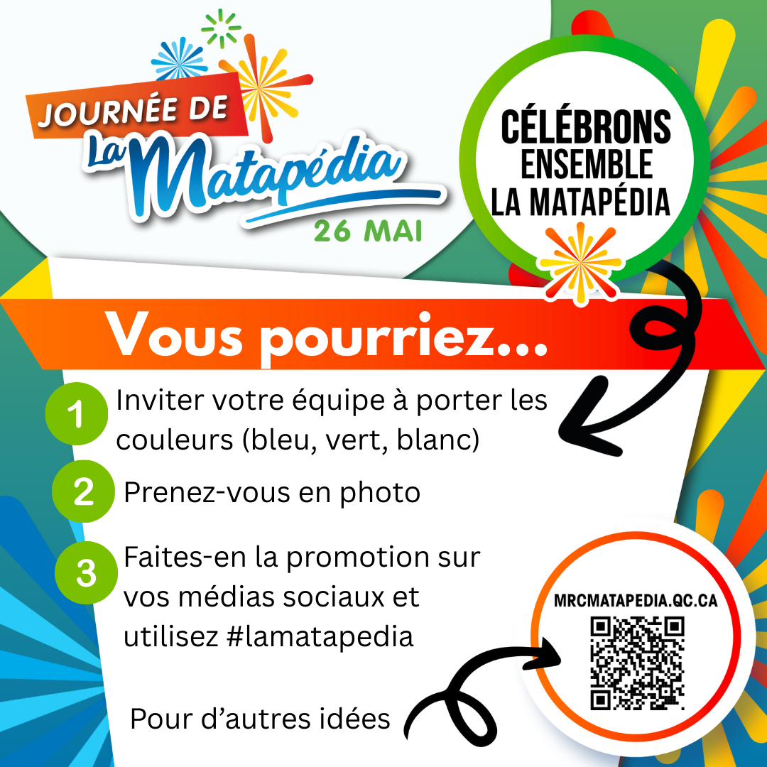 de la Journée de La MatapédiaUne fois de plus, les Matapédiennes et Matapédiens ont été nombreuses et nombreux à répondre à l’appel à célébrer le 26 mai, Journée de La Matapédia, lancé par la MRC pour une troisième année. Municipalités, organisations et citoyennes et citoyens ont profité de l’occasion pour manifester leur fierté et leur appartenance à la région!