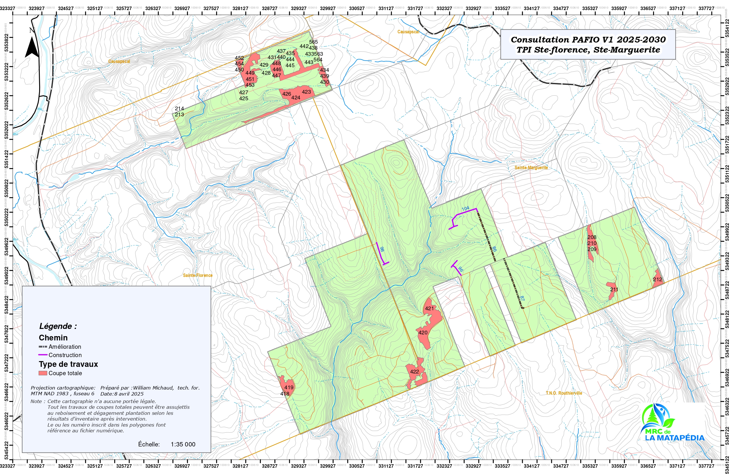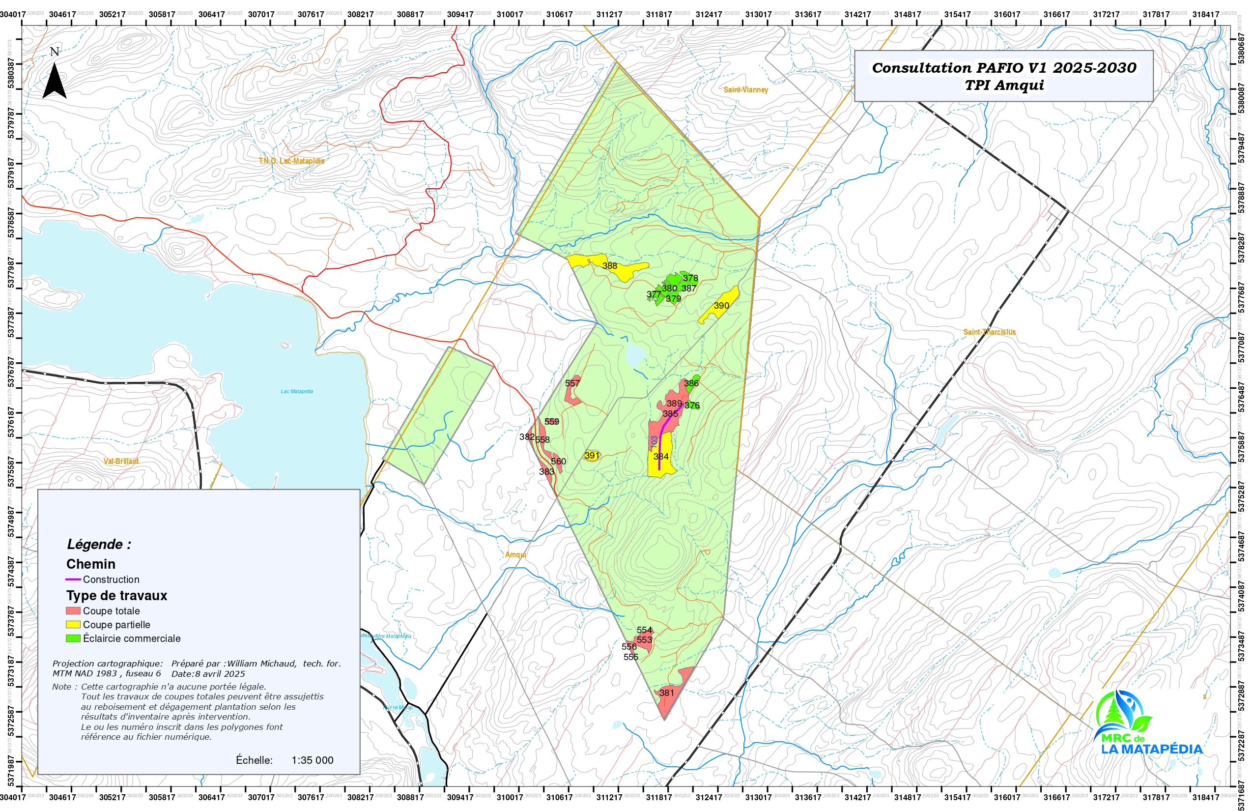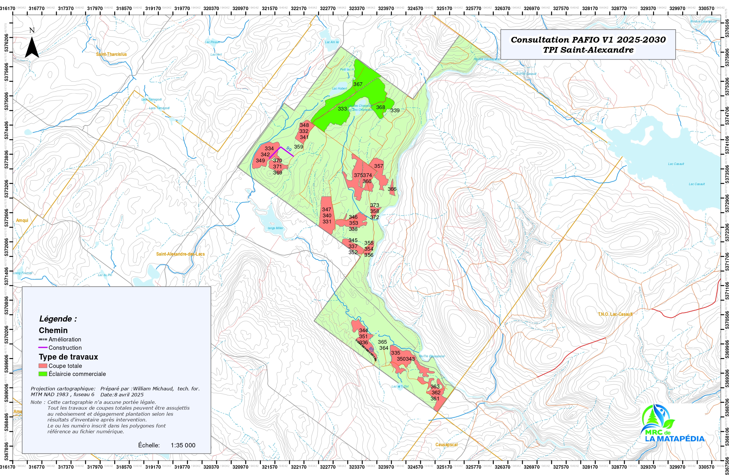 Du 14 avril au 9 mai 2025, la population est invitée à s’exprimer sur la version 1 du Plan d’aménagement forestier intégré opérationnel (PAFIO) 2025-2030 applicable terres publiques intramunicipales dont la gestion est déléguée à la MRC de La Matapédia.