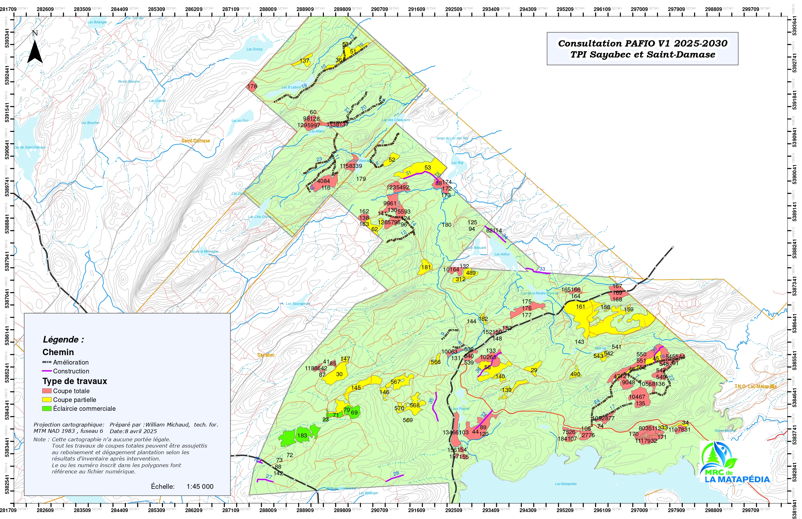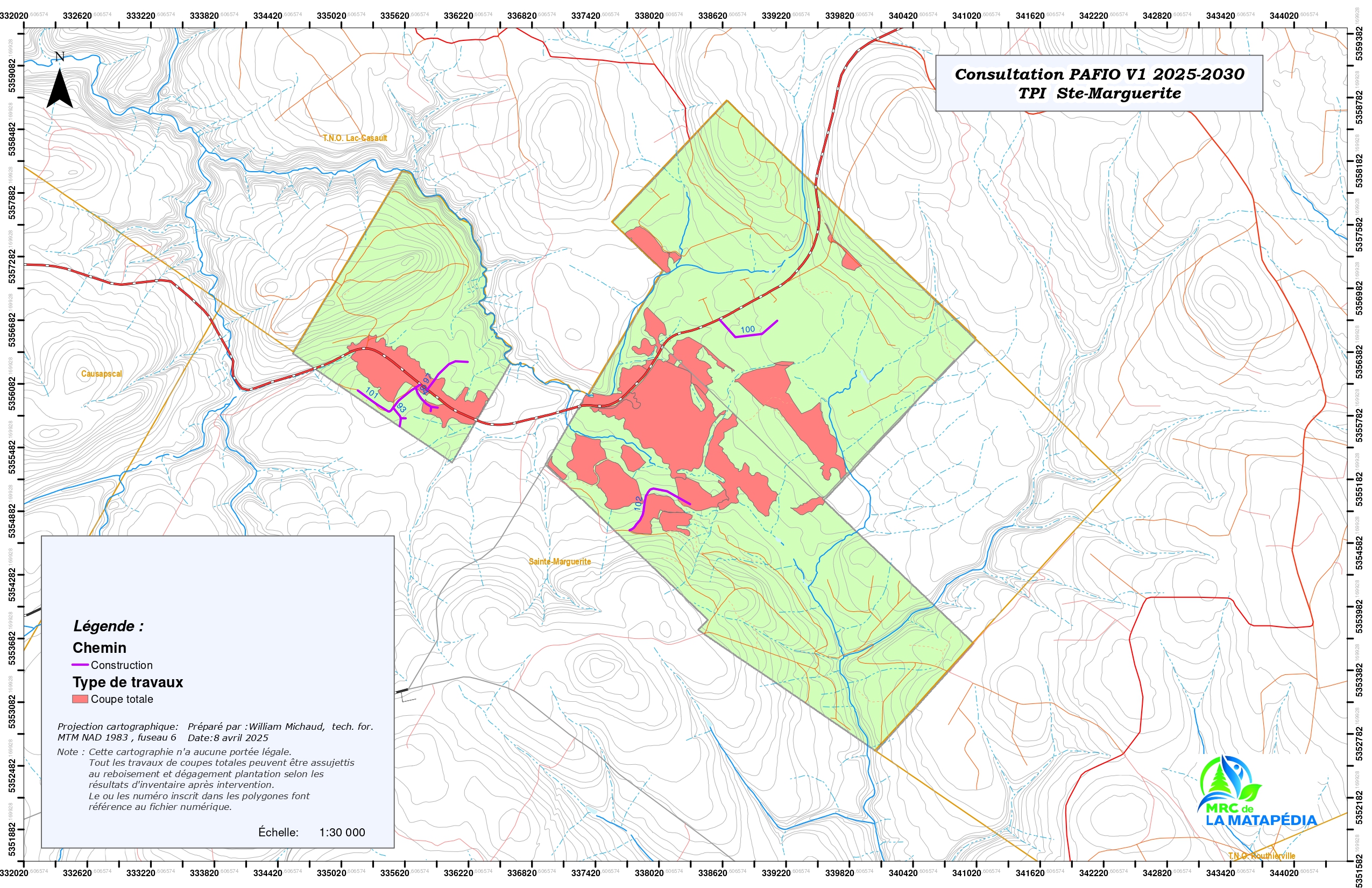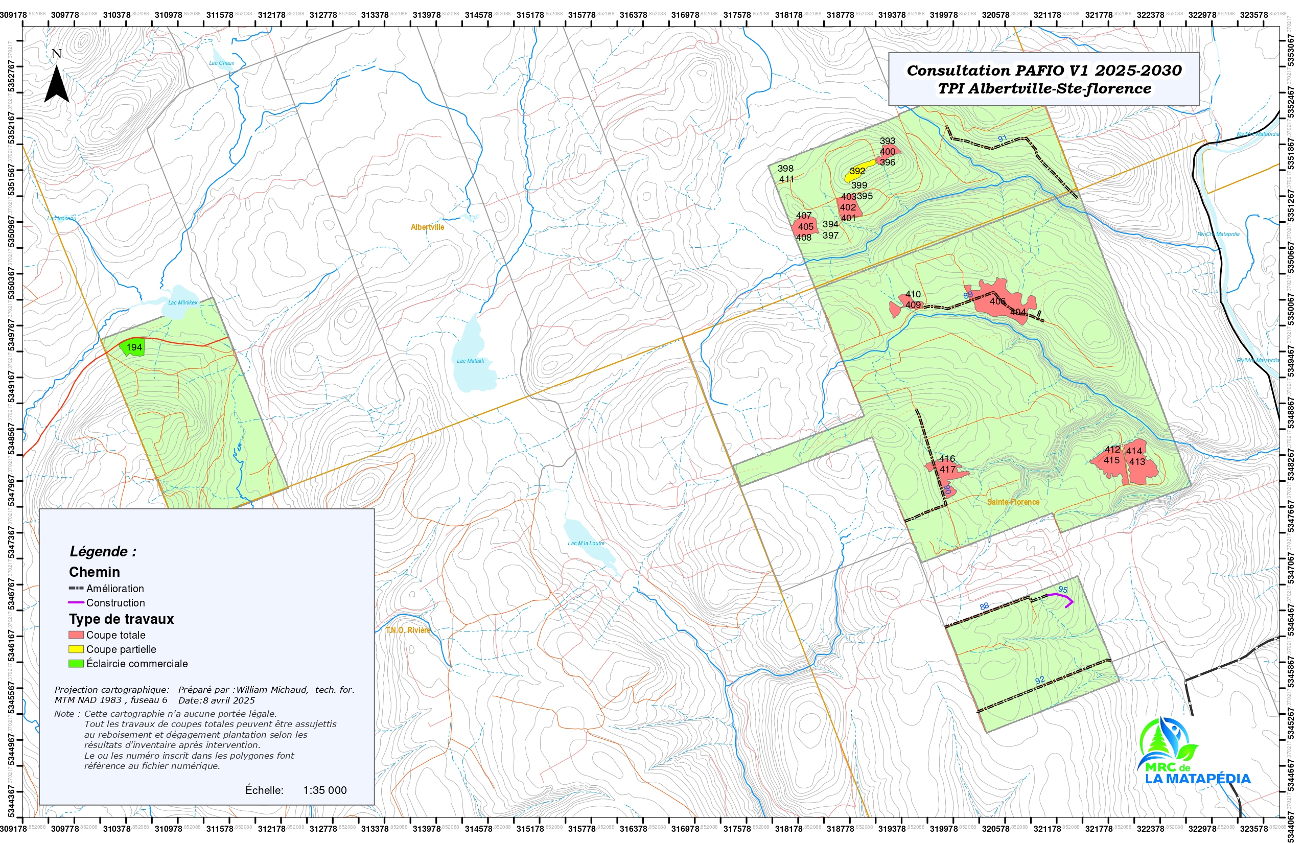 Du 14 avril au 9 mai 2025, la population est invitée à s’exprimer sur la version 1 du Plan d’aménagement forestier intégré opérationnel (PAFIO) 2025-2030 applicable terres publiques intramunicipales dont la gestion est déléguée à la MRC de La Matapédia.