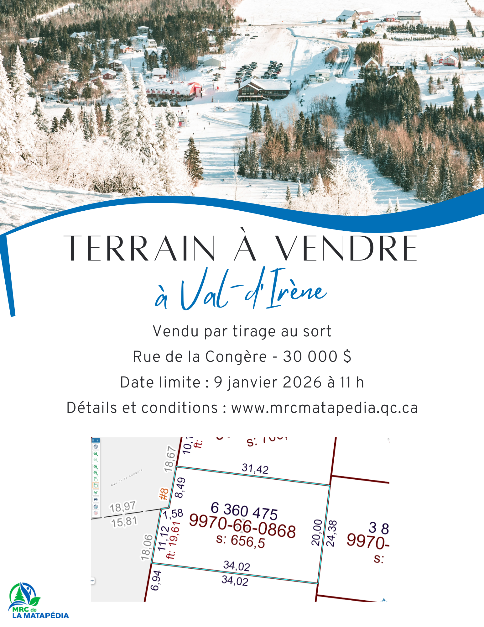 Cliquez ici pour tous les détails sur le terrain et sur la procédure de vente par tirage au sort