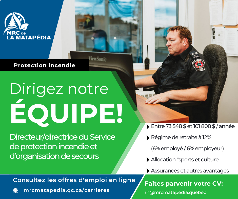 Offre d'emploi - Directeur/directrice du Service de protection incendie et d'organisation de secours